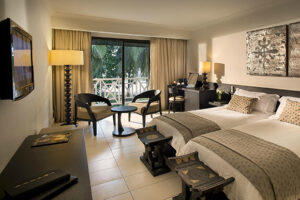 The hotel has 5 Bars, 2 restaurants, a Spa with plunge pool, well equipped Gym, Lagoon for fishing, 2 plush Leisure and lap pools on a sprawling tropical landscaped garden overlooking the natural Lagoon. The spa houses four treatment rooms, complete with shower facility in each room, a double suite for couples’ therapies, a designer Manicure and Pedicure lounge, a custom-made Spa hydro pool and a relaxation area, offering guests a sanctuary for the senses and a place for physical and mental renewal.